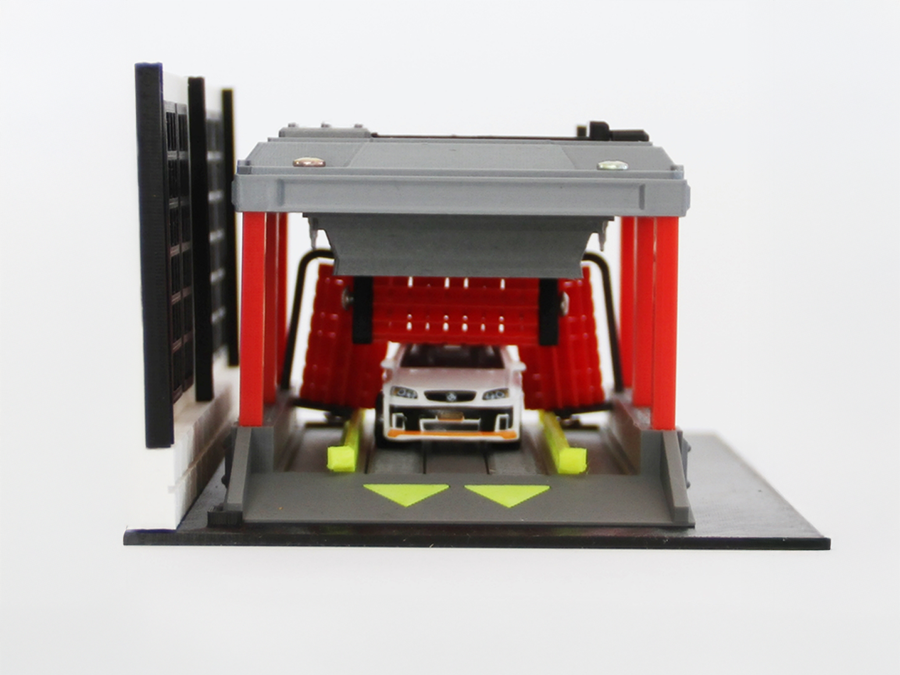 Präsentieren Sie Ihre Modellautos realistisch mit unserer Auto Waschanlage – The Car Wash! im Maßstab 1:87 (H0). Dieses detailreiche 3D-gedruckte Diorama ist ideal für Modelleisenbahnen, Dioramen und Miniaturstädte.