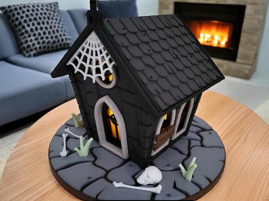 Ein detailreich gestaltetes Halloween-Spukhaus als perfekte