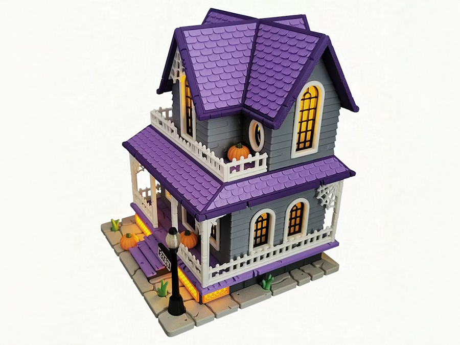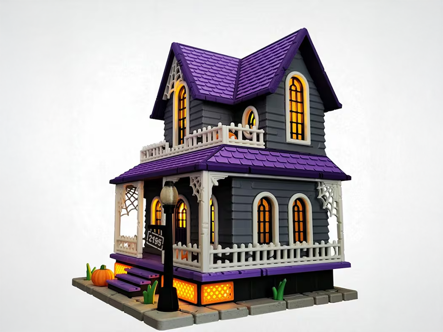 Hol dir dein Halloween-Highlight! Dieses detailreiche Haus kommt in den Originalfarben der Druckteile – genau wie auf den Fotos – und sorgt mit Kürbissen, Spinnweben und kleiner Veranda sofort für gruselige Stimmung. Gestalte es nach deinem Stil und mach es zu einem besonderen Blickfang auf Fensterbank, Regal oder Tisch!