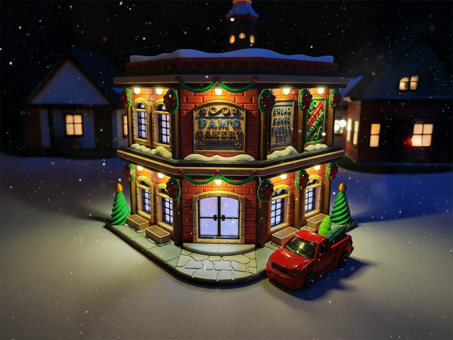 Pams Weihnachtsbäckerei • 3D-Bausatz für Diorama • Miniaturhaus 1/64 oder 1/87 • Xmas Village Gebäude • Hot Wheels Diecast Matchbox | 3D-0100