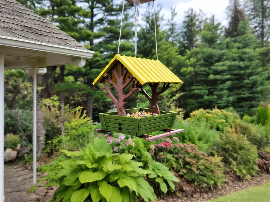 Vogel-Futterhaus Waldhütte – 3D-Druck | wetterfestes PETG | montiert | PA1 Authorized Reseller | 3D-0080
