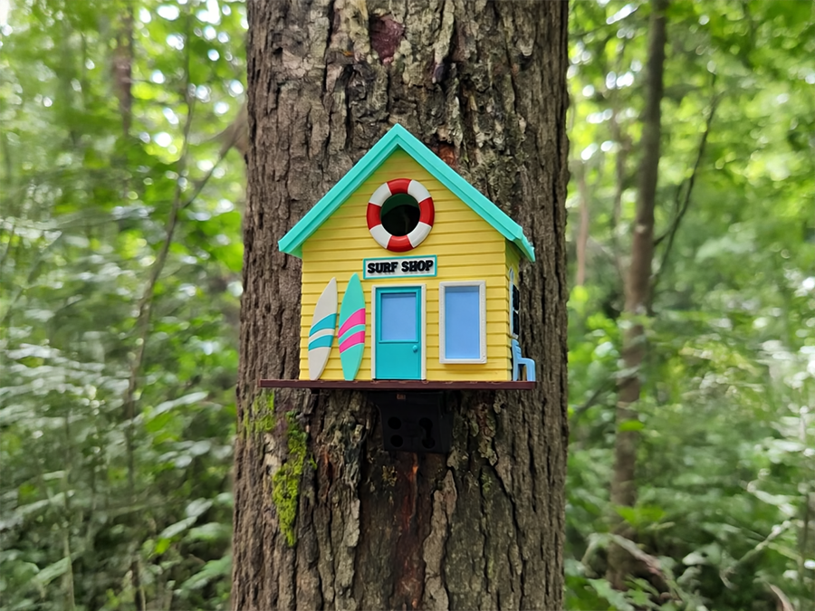 diesem außergewöhnlichen Vogelhaus im Western-Saloon-Design.