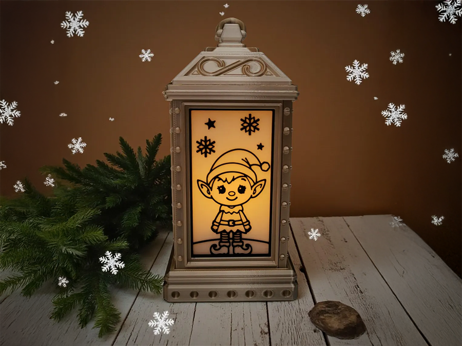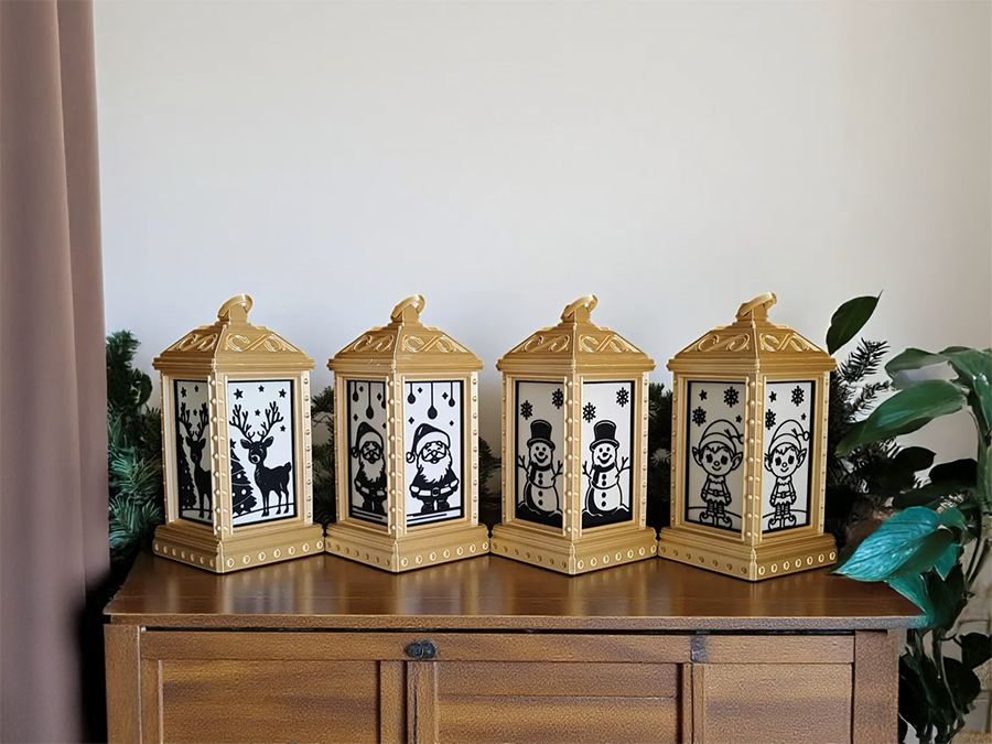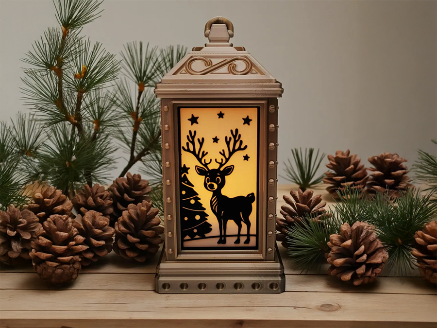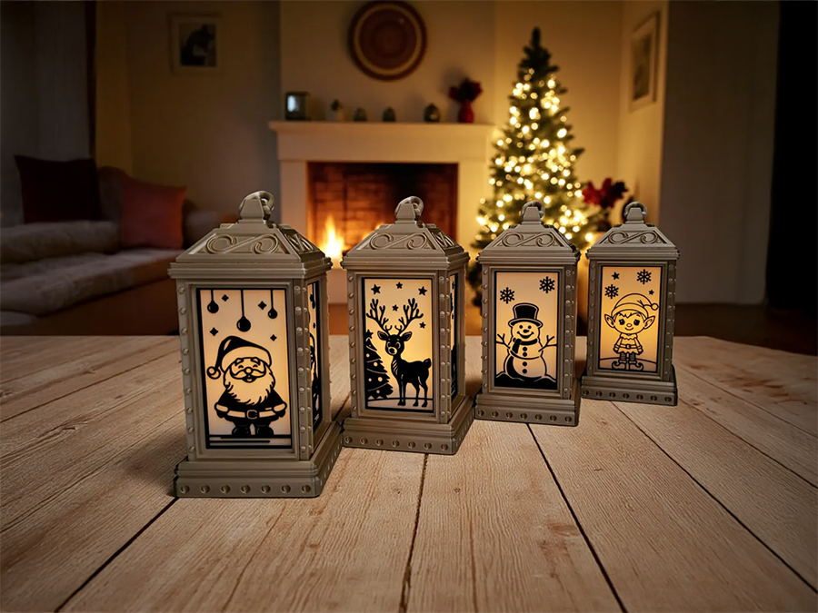 Produktinformationen "Christmas / Weihnachtslaterne mit LED-Teelicht | 4 verschiedene Designs | Tischdeko | 3D-0071"