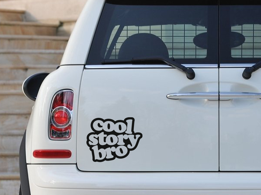Produktinformation "Cool Story Bro / Coole Geschichte Bruder" Fahrzeug Aufkleber. Dieses Produkt enthält einen Aufkleber. Lieferumfang: 1x Aufkleber inkl. Transfertape 1x Rechnung mit ausgewiesener MwSt. Größenübersicht beim Aufkleber Cool Story Bro / Coole Geschichte Bruder: (AG-0185) 12 x 10 cm (AG-0186) 15 x 12 cm (AG-0187) 20 x 16 cm Wenn Ihre gewünschte Größe nicht dabei ist, schreiben Sie uns doch gerne unter info@stickerandmore.de , rufen uns an unter 02254 – 6014935 oder kontaktieren uns über den Whatsapp Button der unten links auf der Webseite erscheint.   Wichtige Infos: Der Aufkleber kann nur auf glatte Flächen verklebt werden. Nicht auf frisch gestrichene Latexfarbe kleben (Ca. 6 Wochen ab Neustreichung warten) Sorgen Sie dafür, dass der Untergrund fett- und Öl frei ist. Die Verklebe Temperatur sollte über +8°C betragen, aber +25°C nicht überschreiten. Dieser Aufkleber ist in über 40 Farben verfügbar.