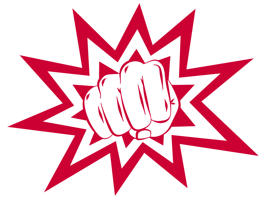 Das Motiv zeigt eine Superheldenfaust mit Comic Effekt.