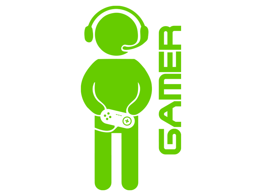 Das Motiv zeigt eine Mensch Silhouette mit einem Controller in der Hand. Rechts steht der Text „Gamer“.