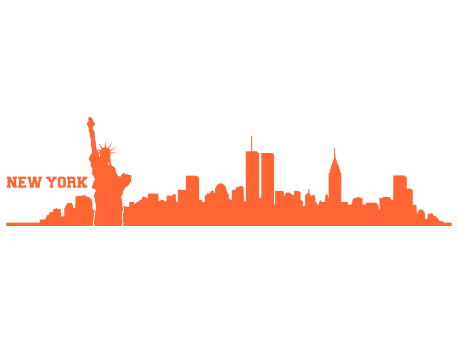 Das Motiv zeigt eine Skyline von New York. Groß zu erkennen ist die Freiheitsstatue und daneben ein Text der da heißt „New York“.
