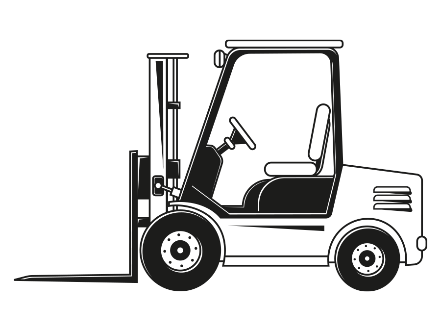 Das Motiv zeigt einen Gabelstapler der seitlich steht.